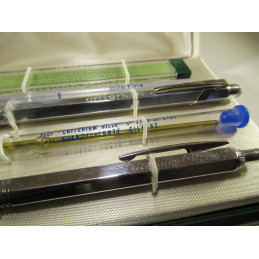 French CRITERIUM ballpoint pen and mechanical pencil box, CIRCA 1960, new old stock, Societe Generale bank advertising, functional mechanical pencil with leads provided, ballpoint pen with cartridges present but dry. Box in very good condition, for collection.