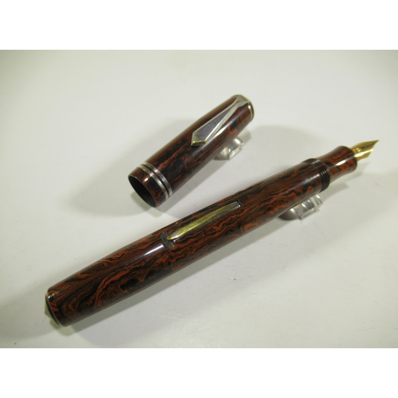 MALLAT A 53 french fountain pen, in black and red hard rubber, “ MALLAT – N°3 - IRIDIUM ” gold plated nib, lever filling system with sac in the pen. Marking on the barrel "MALLAT PARIS - A 53", length with the cap 114 mm, diameter of the barrel 11.5 mm. Good general condition, for collection or writting.