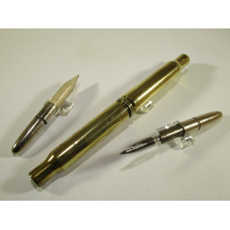 Combined pen holder and pencil holder made in the trenches during the First World War by welding two rifle cartridge cases together. On one side there is the pen holder and on the other there is a pencil holder which is used by turning the ball in the socket.