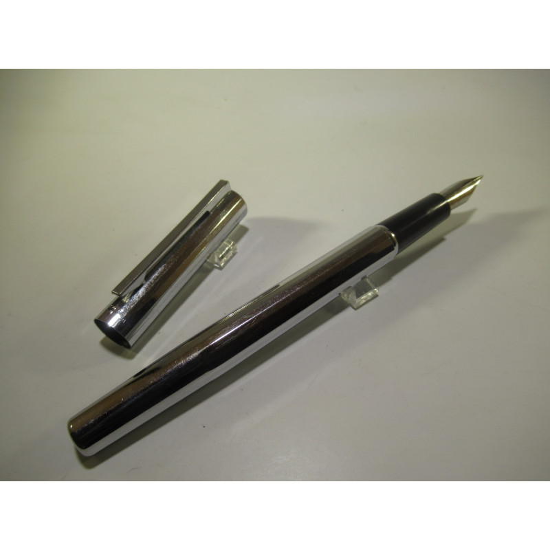 French WATERMAN fountain pen, 1980s, faceted chrome finish, steel nib, very good overall condition. Comes with a CF cartridge and a refill syringe. Length with cap: 130 mm, cap diameter: 10 mm. For collecting or writing. If you wish to use it, please ask me to set it up.