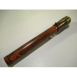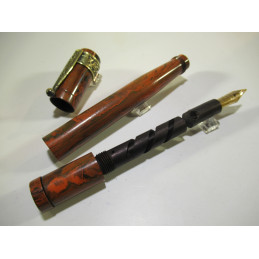 MONTE CRISTO french safety fountain pen, engraved on the barrel but almost erased “ MONTE CRISTO ”, in red and black hard rubber, functional mechanism, gold nib “ WARRANTED – 18 Cts – 1st QUALITY ”, closed length 120 mm, cap diameter 14 mm, delivered with a pretty brass clip. Very good general condition, for collection.Without guarantee to be used.