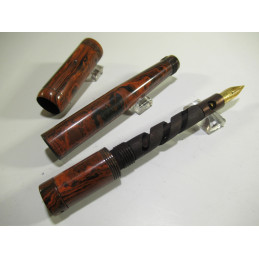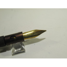 GOLD STARRY safety fountain pen, gold nib “ GOLD STARRY - 18 CARATS – 1 ST QUALITY ”, in red and black hard rubber, marking on the barrel “ MANUFACTURE FRANCAISE - GOLD STARRY – MARQUE DEPOSEE – N°256”, mechanism in perfect condition. Length with cap 101mm, cap diameter 12mm. Excellent general condition, for collection. Untested therefore without guarantee to write.