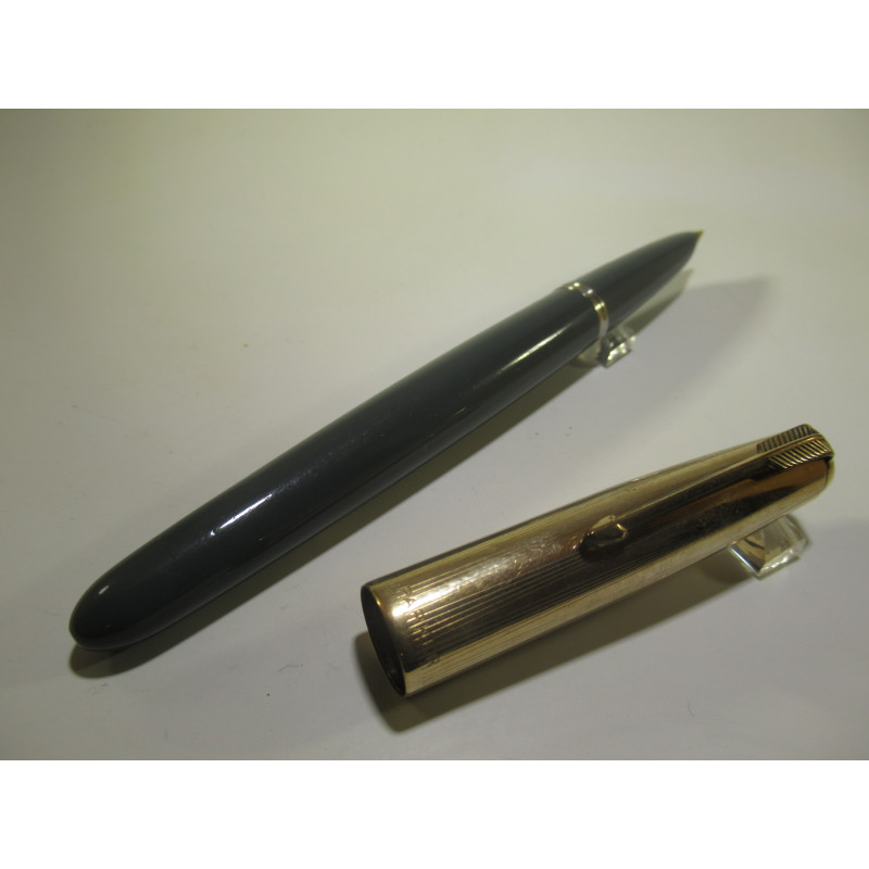 PARKER 51 fountain pen, grey and gold-plated cap, gold nib, converter filling system present in the pen, very good general condition. For collection or to be used. If you want to use it, ask me to put it into service before shipping it to you.