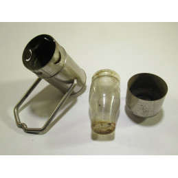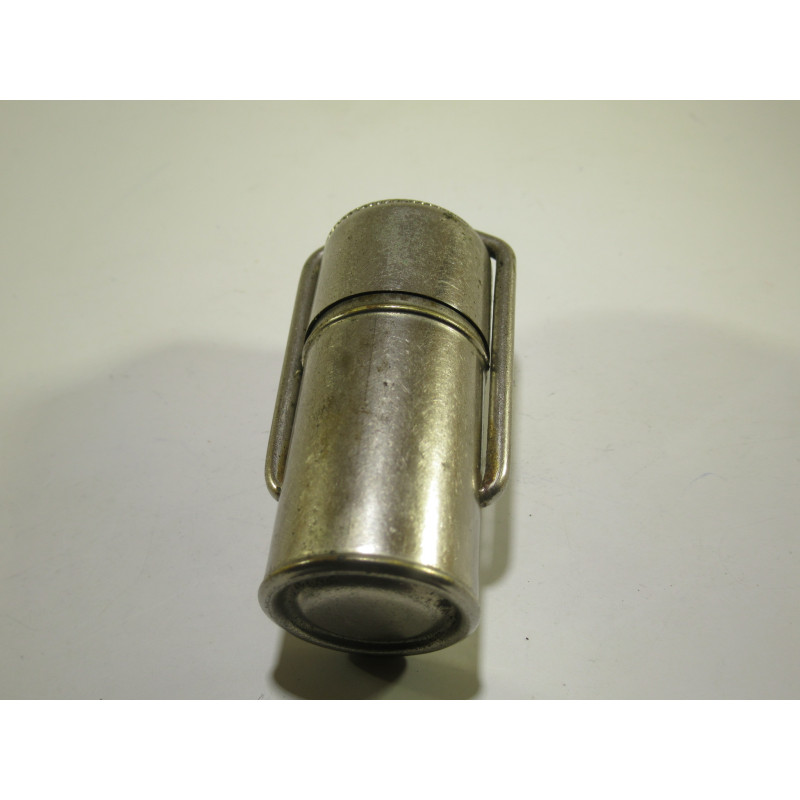 Small unbranded travel inkwell. Glass vial in very good condition, steel case with lock. Seal to be changed for use. Early 20th century, probably French made. Total height with cover: 64mm, diameter: 24mm.