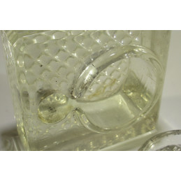 Glass inkwell, unknown manufacture. Glass lid that turns and reveals a small drop for dipping the nib of the pen holder. Very good general condition. The pen holder is offered with the inkwell.