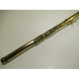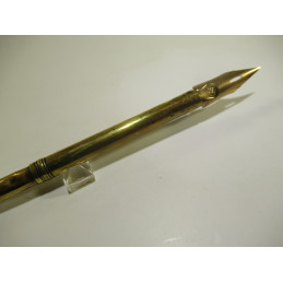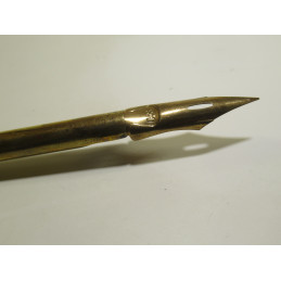Brass pen holder with a raised flower decoration. Traces of use. Comes with a large “ESTERBROOK – FALCON PEN” nib and a small box of matching nibs. To learn to write with a pen holder or to collect. Length: 145 mm.
