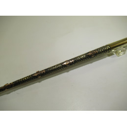 Brass pen holder with a decoration of copper and embossed fleur-de-lys. Very good condition. Comes with a "COMTOISE" nib and a small box of matching nibs. To learn to write with a pen holder or to collect. Length: 185 mm.