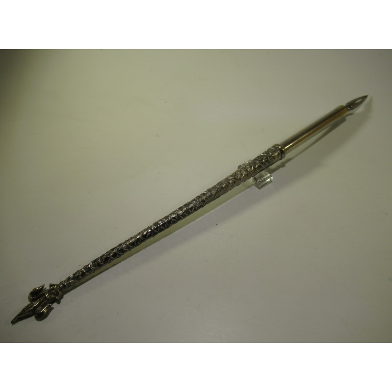 Silver penholder with a fleur-de-lis design. Very good condition. Comes with a small box of matching nibs. Ideal for learning to write with a penholder or for collecting. Length without the nib: 172 mm.