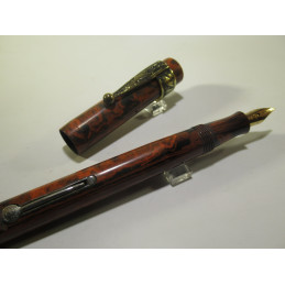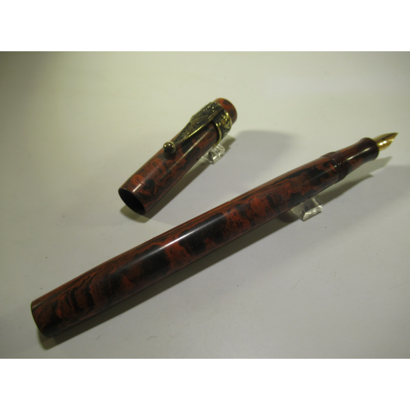 French UNIC fountain pen, in red and black hard rubber, original gold nib "UNIC – 18Cts - 3", marked on the barrel "FOUNTAIN PEN – UNIC – DEPOSE PARIS", very good overall condition, length with cap 139 mm, barrel diameter 11 mm, lever filling system, no sac inside. For collectors but can be put back into use.