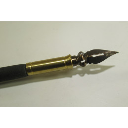 Wooden pen holder. Made in France. Black color with brass ferrule and top. Comes with 3 matching nibs. Length without nib: 168 mm. New condition from old stock. To learn to write with a pen holder or to collect.