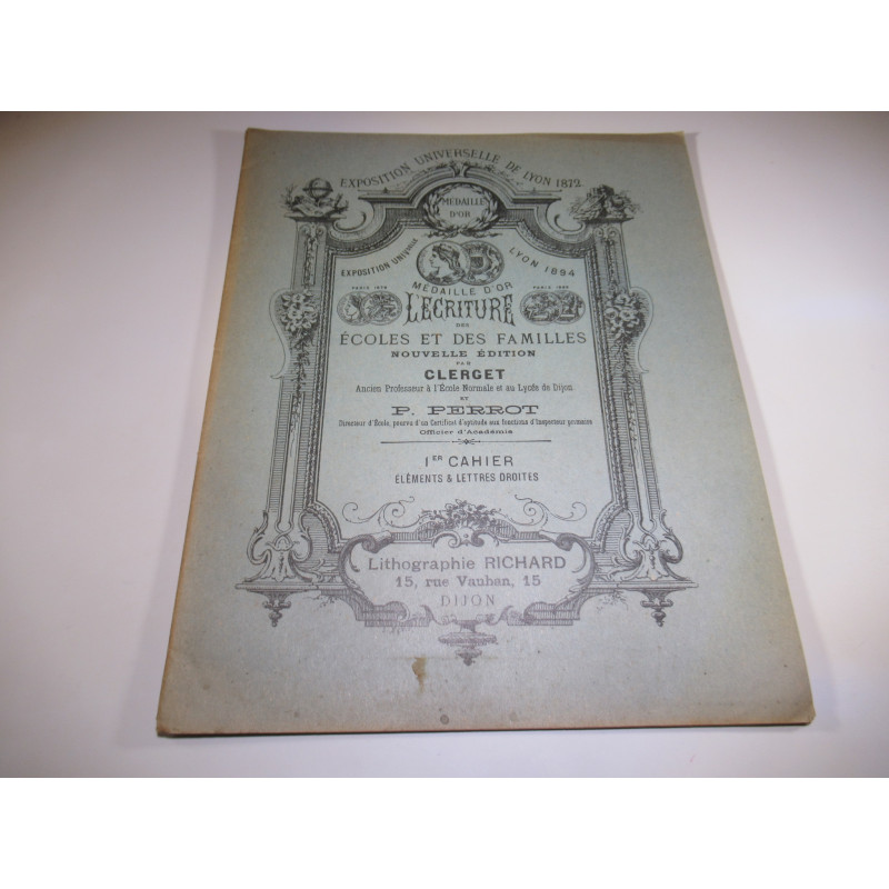 Very old notebook for learning to write dating from the end of the 19th century. Sold by the RICHARD bookstore in Dijon, Burgundy (France), a bookstore that has not existed for a very long time. New from old stock. Exceptional and rare item for collection.