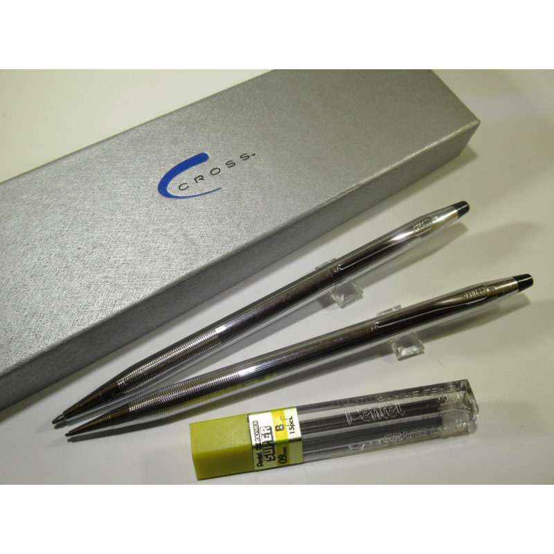 CROSS CLASSIC CENTURY chrome-plated ballpoint pen + mechanical pencil, ballpoint pen refill in good condition, 0.9mm mechanical pencil in working order, excellent overall condition. Comes in its original case with a box of 0.9mm leads. For collecting or writing.