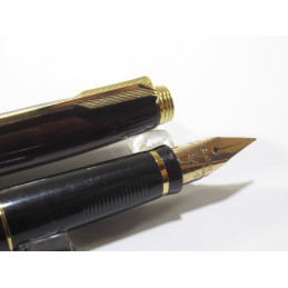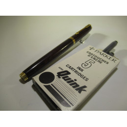 PARKER 75 fountain pen, black and burgundy lacquer, gold nib "PARKER 18K France" F, cartridge filling system, marked on the base of the cap "PARKER - France", very good overall condition. Comes with a box of cartridges. For collection or for writing. If you want to use it, ask me to put it into service before shipping it to you.