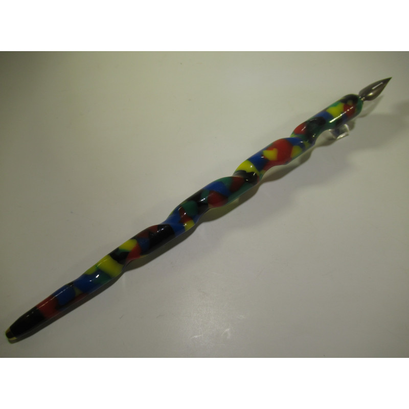 French multicolor marbled resin pen holder carved into a helix. In very good condition. Comes with 1 box of assorted nibs. Length without nib 163 mm. For learning to write with a pen holder.