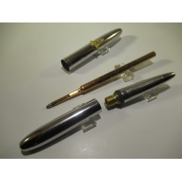 American Space Pen, designed for astronauts, allowing writing in zero gravity and on Earth in any position. Length: 95 mm, barrel diameter: 10 mm. Nickel-plated metal with a small gold space shuttle motif. Marked on the base of the cap: "SPACE PEN by FISHER – USA". The original refill is present and functional. Excellent overall condition. For collectors or for writing.