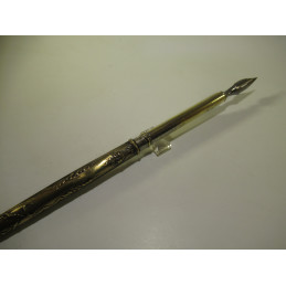 Brass penholder with a raised floral design. Signs of wear. Comes with 3 matching nibs. Ideal for learning to write with a penholder or for collecting. Length without nib: 185 mm.