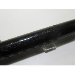 French MOR'S safety fountain pen manufactured by the SABATIER company, which also marketed its pens under the WATTMAN brand. Made of black hard rubber, with a functional mechanism, a gold nib marked " WARRANTED 18K 1st QUALITY ", and the barrel is marked "MARQUE DEPOSEE - MOR'S - FABRICATION FRANCAISE" . The pen is 93 mm long when closed and 12 mm in diameter at the cap, with a ring decorated with a holly branch motif. Appears to be new, never used, and in very good overall condition. Ideal for collectors. Writing function is not guaranteed.