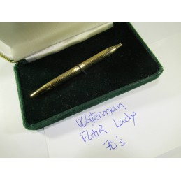 WATERMAN FLAIR LADY ballpoint pen from the 60s-70s, gold-plated, marking on the top "WATERMAN - MADE IN FRANCE", marking on the body "PLAQUE OR G", never used, excellent general condition, delivered with 2 refills in its covered box green velvet. For collection or for writing.