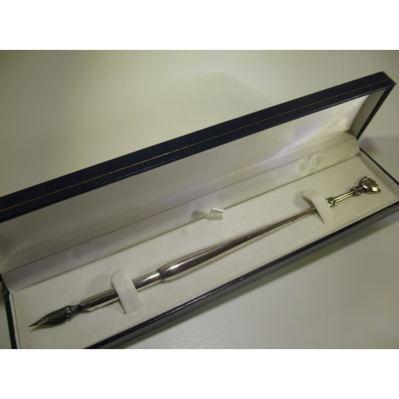 Solid silver penholdder. In very good condition. Comes with 1 "LEONARDT & CO" nib. Comes in a beautiful case. For learning to write with a penholder or for collecting. Length: 175 mm.
