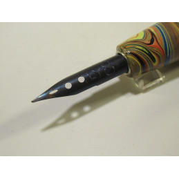 Wooden penholder with marble paint. French brand "GILBERT BLANZY POURE". New condition from old stock. Delivered with 3 nibs. For learn to write with a nib on a penholder or to collect.