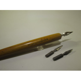 Wooden penholder from the famous French brand MALLAT. MALLAT invented the first fountain pen, "LE SIPHOÏDE," in 1864. In very good condition. Comes with 3 nibs. Perfect for learning to write with a penholder or for collecting.