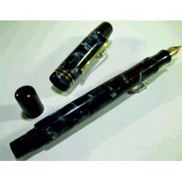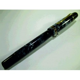 Belgian fountain pen, marking on the cap "LABOR - JB BRUXELLES", in blue and black celluloid, closed cap length 131 mm, cap diameter 13.5 mm, gold nib "VALENTINE - 14 CT - 1st QUALITY", piston filling system functional, good general condition, without guarantee to write, for collection.