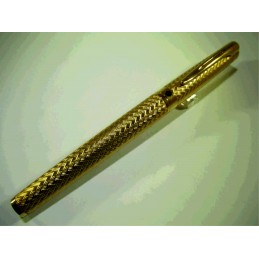 WATERMAN fountain pen, "ETALON" model, with converter in the pen, never used, gold-plated, excellent overall condition. Gold nib « WATERMAN - PARIS - 18K – 750 » Length with cap: 140 mm, cap diameter: 12.5 mm. For collection or for writing.