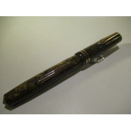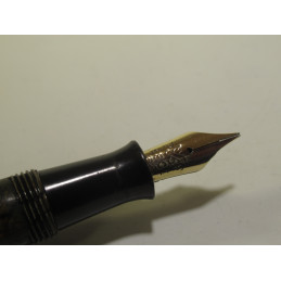 LADY BAYARD fountain pen, in brown and beige celluloid, gold nib « PF - 18 ct – 35 ». PF stands for PANICI FRERES, see the website: https://bayard-sans-reproche.com/premiere-collection-made-in-france/