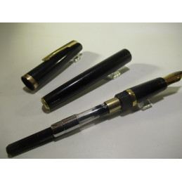 WATERMAN STRONG fountain pen, predecessor to the MAN 100, with a gold nib marked "WATERMAN – SUPER – 6 – 18 Carats" and a black resin body. Comes with a converter and a silicone adapter gasket made in-house. Length with cap: 141mm, barrel diameter: 12.5mm. Includes 3 ink cartridges. Excellent overall condition, suitable for collectors or for writing.