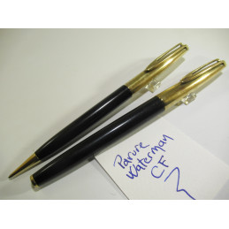 WATERMAN CF fountain pen and mechanical pencil set, “18 K - 750” gold nib, black and gold-plated cap, converter provided, good general condition, the mechanical pencil leads are 0.9mm. The whole thing is tested and functional. For collection or use.