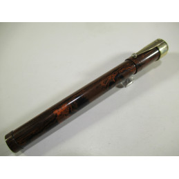 VALCO safety fountain pen, French brand, engraved on the barrel “PORTE PLUME RESERVOIR – VALCO – MARQUE DEPOSEE – FABRICATION FRANCAISE”, in red and black hard rubber, functional mechanism, gold nib “WARRANTED - 18 Cts – 1st QUALITY”, closed length 114 mm, cap diameter 12 mm, very good general condition, for collection. Without guarantee to be used.