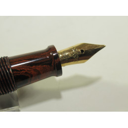 EDACOTO french fountain pen in red and black hard rubber, “EDACOTO – 18 Cts – IRIDIUM – 4” gold nib, functional lever filling system, no sac inside, “EDACOTO” marking on the clip, marking on the barrel « MODELE DEPOSE - MADE IN France – 103 ». Length with cap 115mm, barrel diameter 11.5mm. Very good general condition. For collection. No warranty for use.