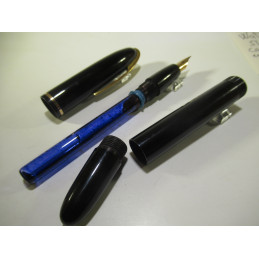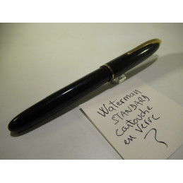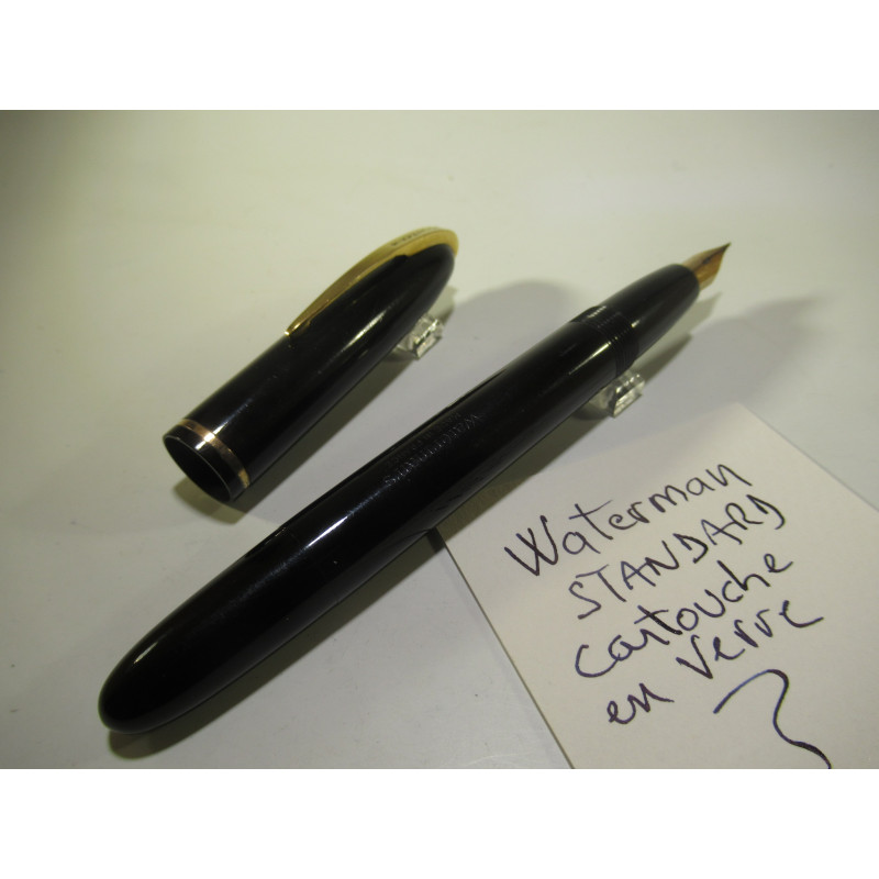 WATERMAN fountain pen with glass cartridge, new silicone seal manufactured by us, gold nib "WATERMAN'S - 18 Cts - 3 - FRANCE", black color, marking on the barrel "WATERMAN'S - MADE IN France", length with cap: 136 mm, cap diameter: 14 mm, good overall condition, for collectors. Tested and functional.