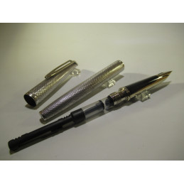 French WATERMAN CF fountain pen in sterling silver, 18K gold nib (750/1000), some slight signs of use but good overall condition. Engraved on the base of the cap "WATERMAN CF - ARGENT MASSIF" and on the barrel "MADE IN FRANCE". Equipped with a converter with a gasket of our own manufacture. Tested and functional. For collecting or writing.