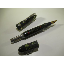 STYLOMINE 303 fountain pen, French made, black, red, and green, gold-plated nib "STYLOMINE – XOX - IRIDINOX – 5", good overall condition, piston filling system, bag present and functional, marking on the barrel almost faded "STYLOMINE 303 MADE IN France". For collectors. Untested, therefore no guarantee of use. If you wish to use it, please ask me to turn it on.