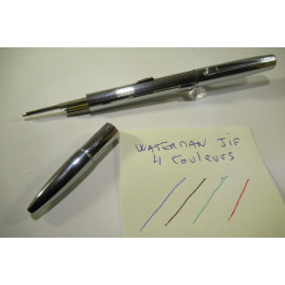 Rare JIF (WATERMAN) 4 colours ballpoint pen, chrome plated, marking on the clip « JIF », working perfectly, the cartridges are present and functional, good general condition. Good general condition, in its original case, for collection or for writing.